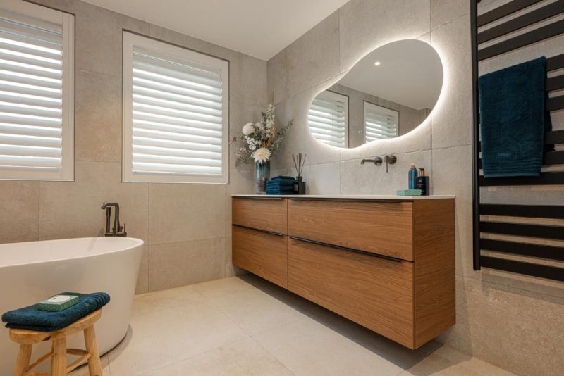 Voor dit project realiseerden we een volledige verbouwing van de benedenverdieping, waarbij ook de badkamer op de eerste verdieping is meegenomen. Het resultaat is een interieur dat modern en verfijnd aanvoelt, maar tegelijkertijd warm, huiselijk en persoonlijk is.