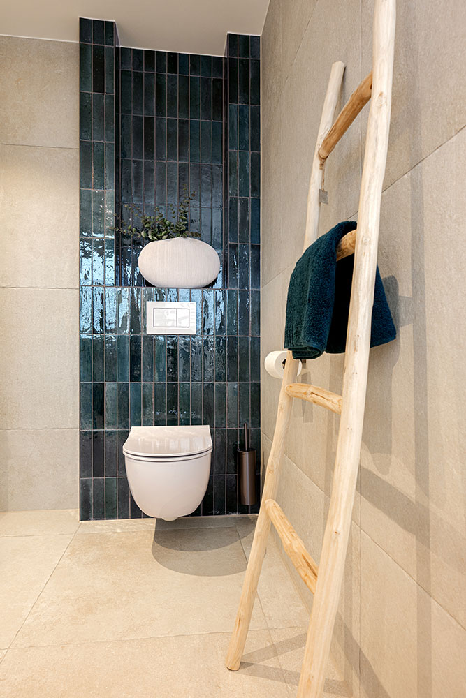 De sfeer wordt gedragen door diepe, donkere blauwtinten, gecombineerd met lichte accenten die zorgen voor balans en rust. Deze contrasten geven het interieur diepte en karakter, zonder de openheid te verliezen. Door zorgvuldig te spelen met kleur, materiaal en licht is een harmonieuze basis ontstaan waarin elke ruimte in verbinding staat met de volgende.